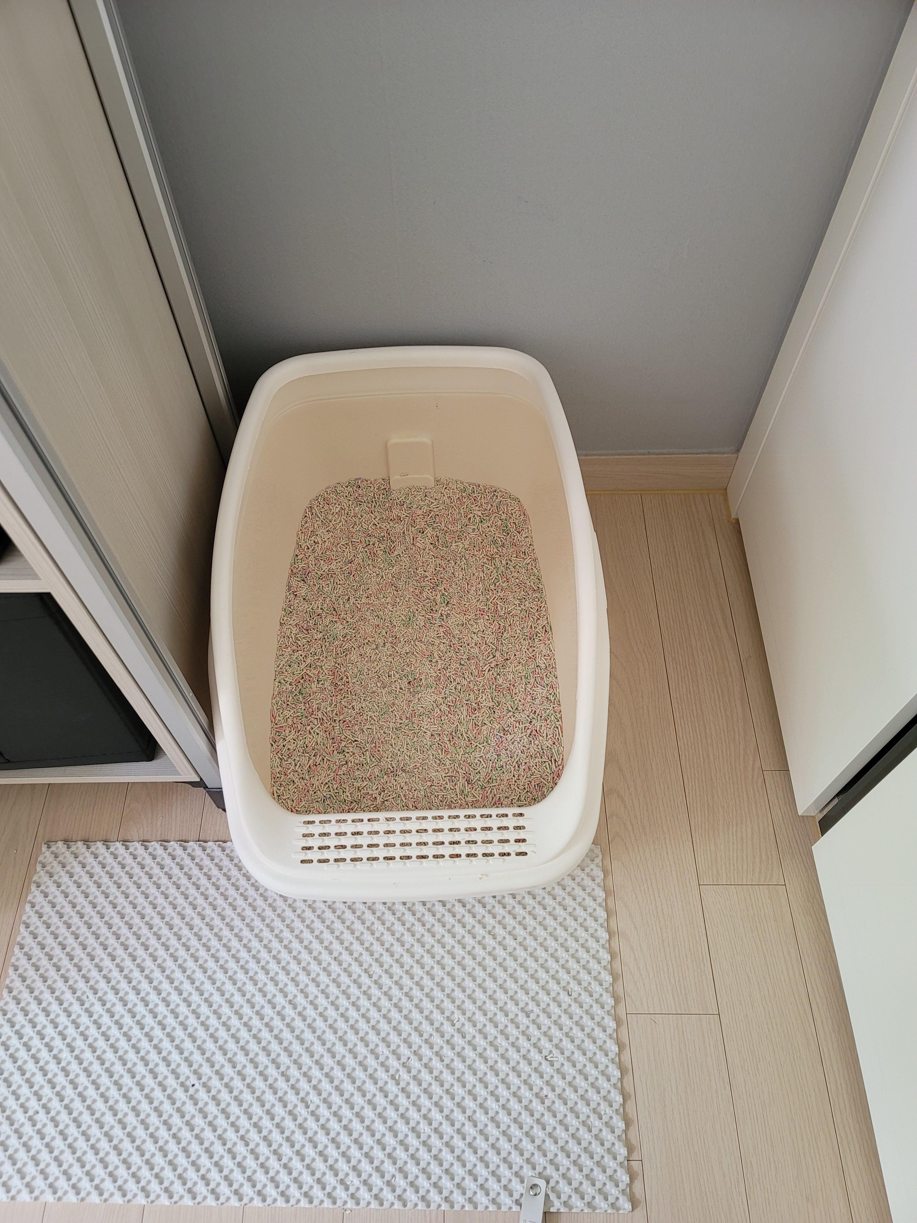 아껭이는 아니고 조금 큰 고양이를 맞이하게 되었다면, 화장실 크기가 가장 중요합니다.