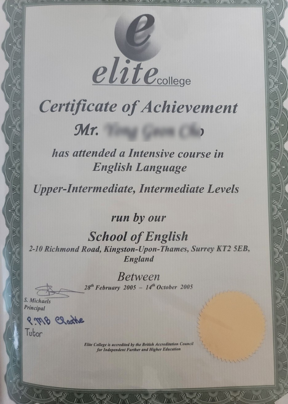 나는 2005년도에 영국에 갔었다. 그때는 영어를 전혀 못했다. 그러다 Elite Language School에서 일반(Intermediate level)반에 들어가서 공부를 하고, Upper-Intermediate반까지 올라가게 되었다. 이 후 조금만 더 열심히 하면 학교에도 들어갈 만큼의 IELTS 점수 기준이 5.0이상을 받을 수 있을 것으로 판단했다.