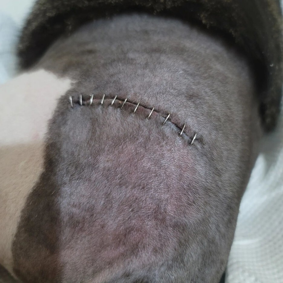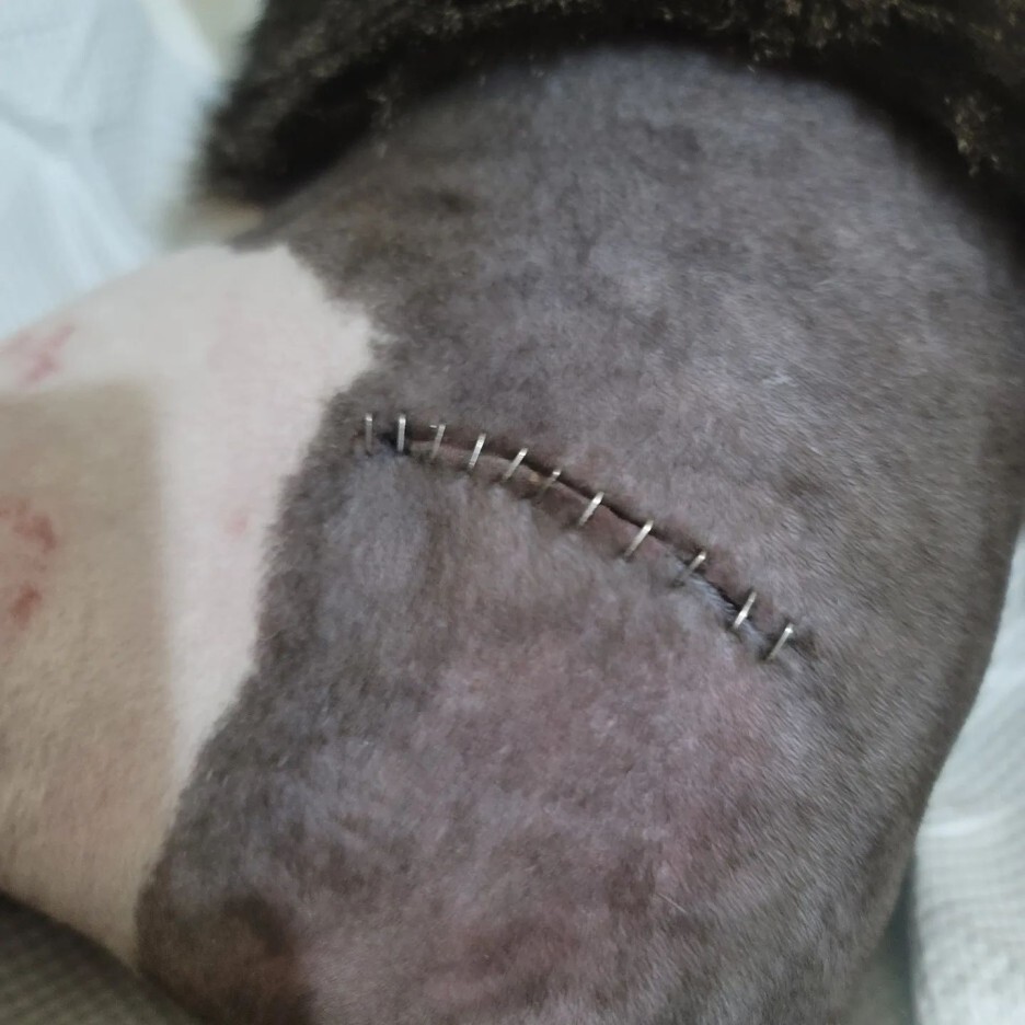 수술은 성공적으로 끝났지만 여러가지 현상이 있었죠.. 넓적다리 부분에 빨간색 상처들 그리고 귀에 괴사 ㅜ.ㅜ