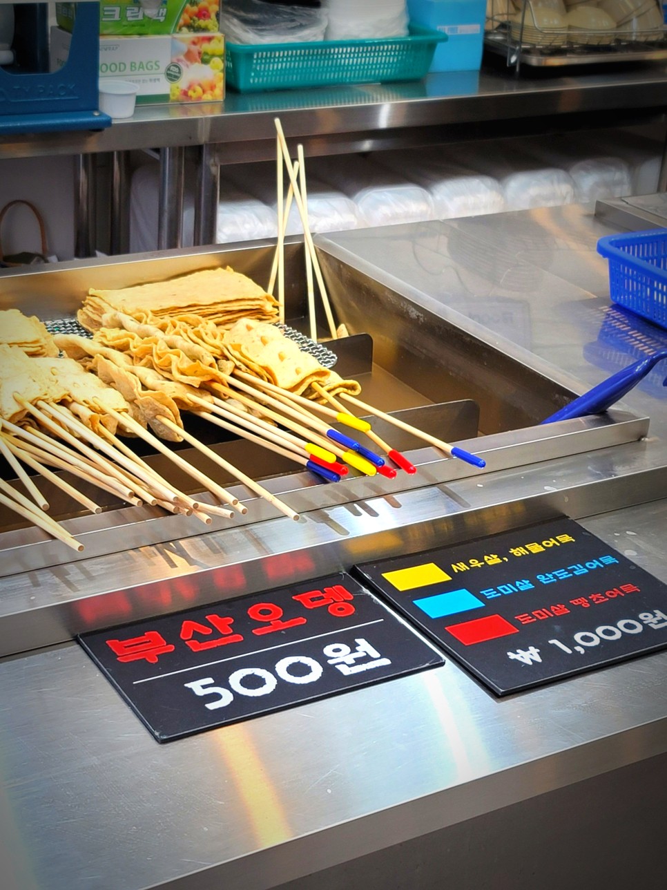 2인 좌석 3개 있습니다. 직접 드시고 가시려면 자리를 잡은 뒤에 드시면 되겠습니다. 이 곳에서는 여전히 500원짜리 어묵이 존재합니다~~ 라떼 이야기는 그리 많이 하지 않지만, 저희때 오뎅 하나가 50원이었습니다. 세월이 참 빠르게 흘러가는 걸 실감하게 됩니다.